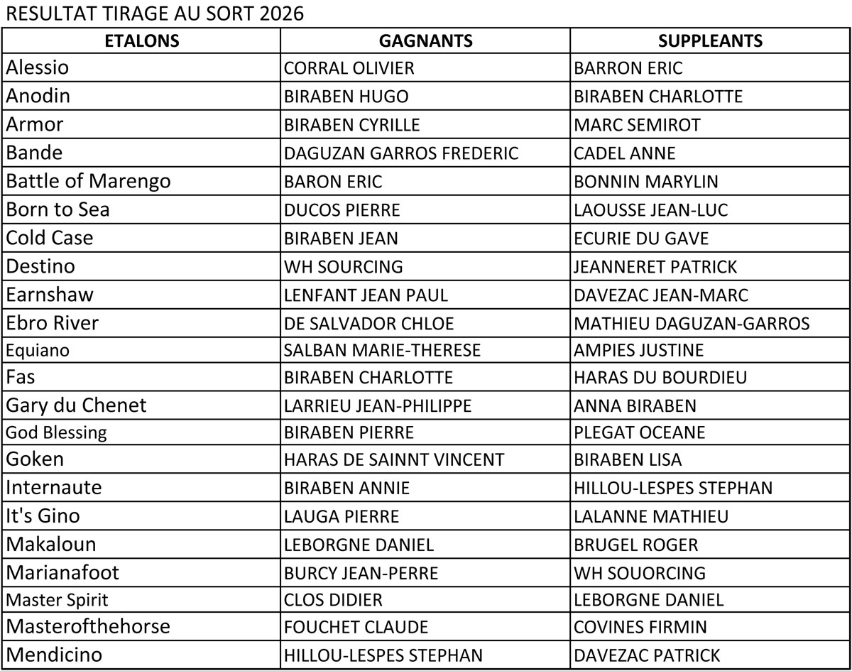 Tirage au sort des saillies gratuites : voir les résultats